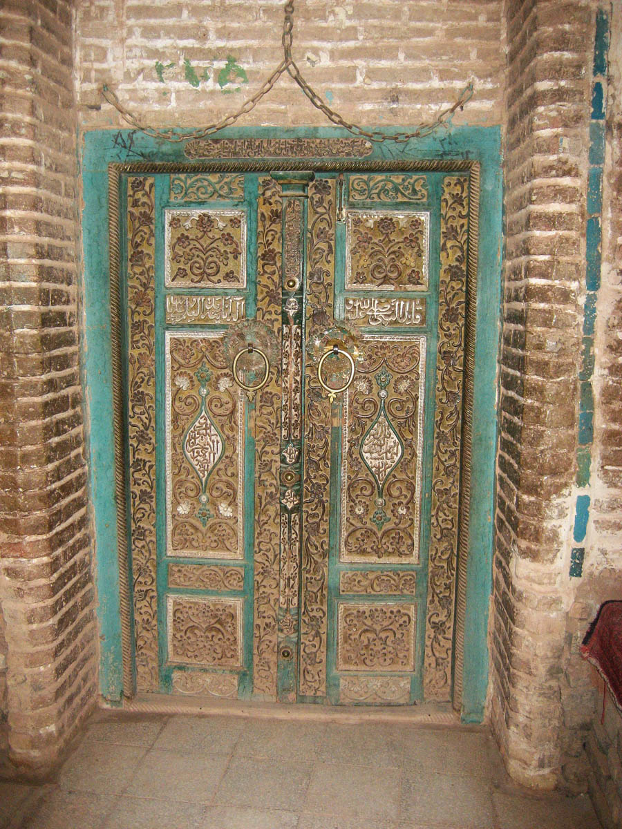 An ancient door on the Friday Mosque in Abyaneh, Iran
