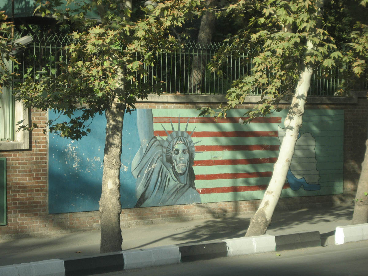 For 25 years following CIA orchestrated coup in 1953, the US was believed to have supported and influenced the Shah from a bunker in the basement of the embassy... (Murals on the former US Embassy wall, closed following the 1979 revolution.)