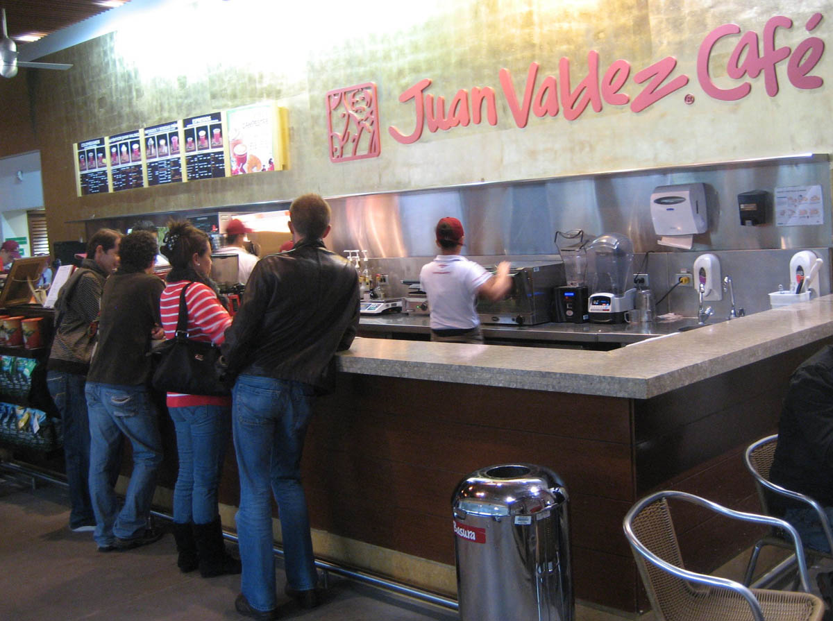 Colombia's version of Starbucks is "Juan Valdez Cafe," where you can get a grande cafe latte for about a buck fifty. As Juan would say, "Colombian coffee....it's the richest kind."