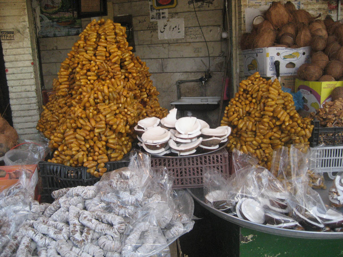 Coconut and dates for sale in the Esfahan market. The Iranian dates were delicious!