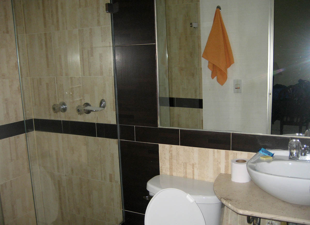 Nice private, modern tile and glass bathroom with lots of hot water! A welcome change from my room in Bogota!