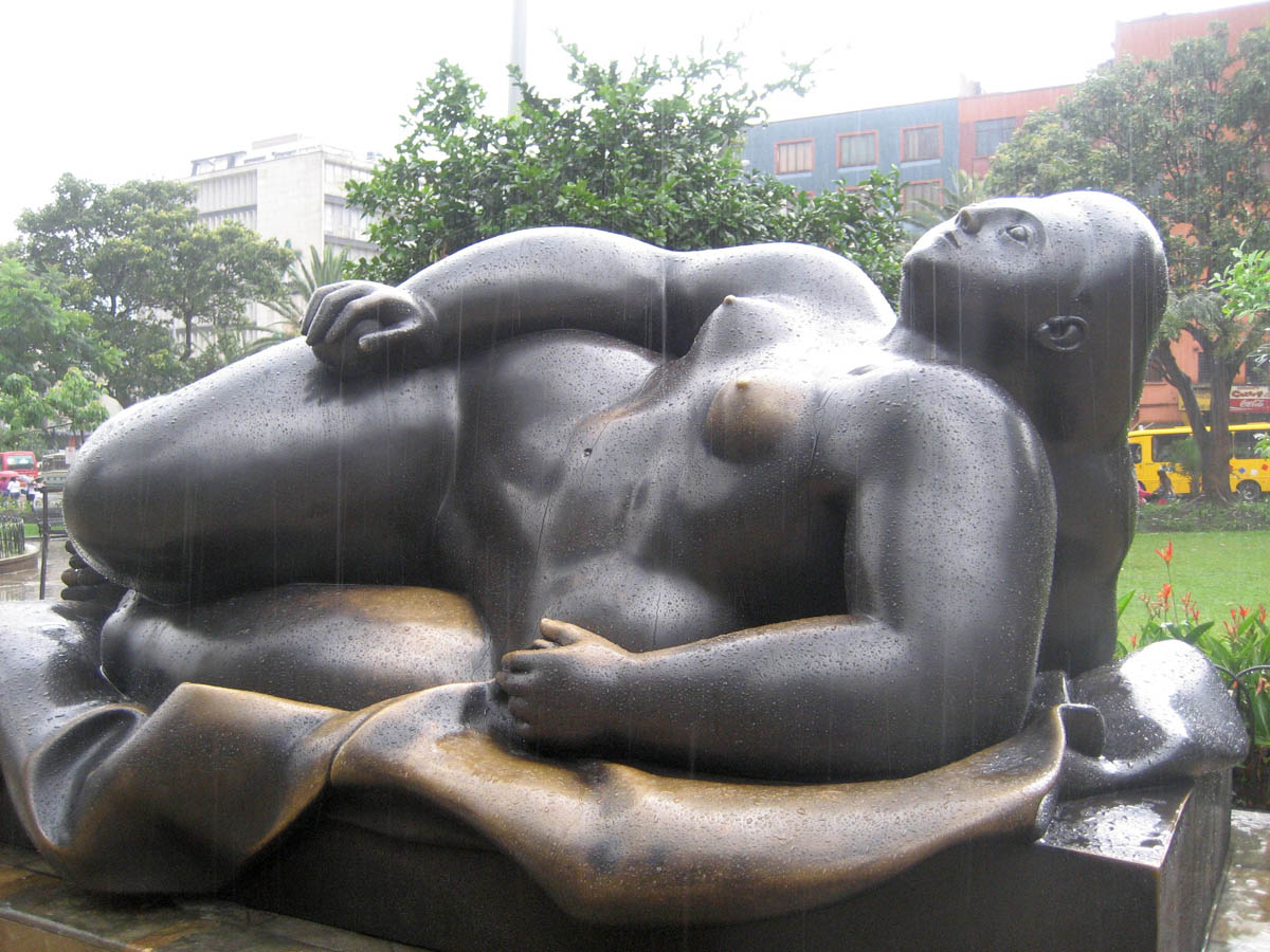 It almost seems as if Botero's bronze voluptuous women are basking in the rain.