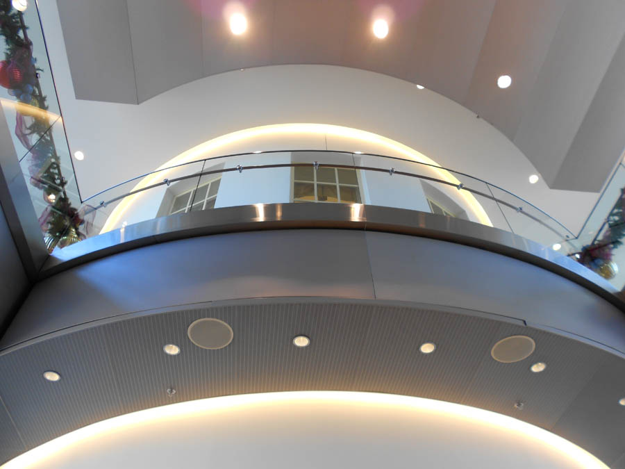 Inside the museum, looking up at the Oval Office replica from the floor below.