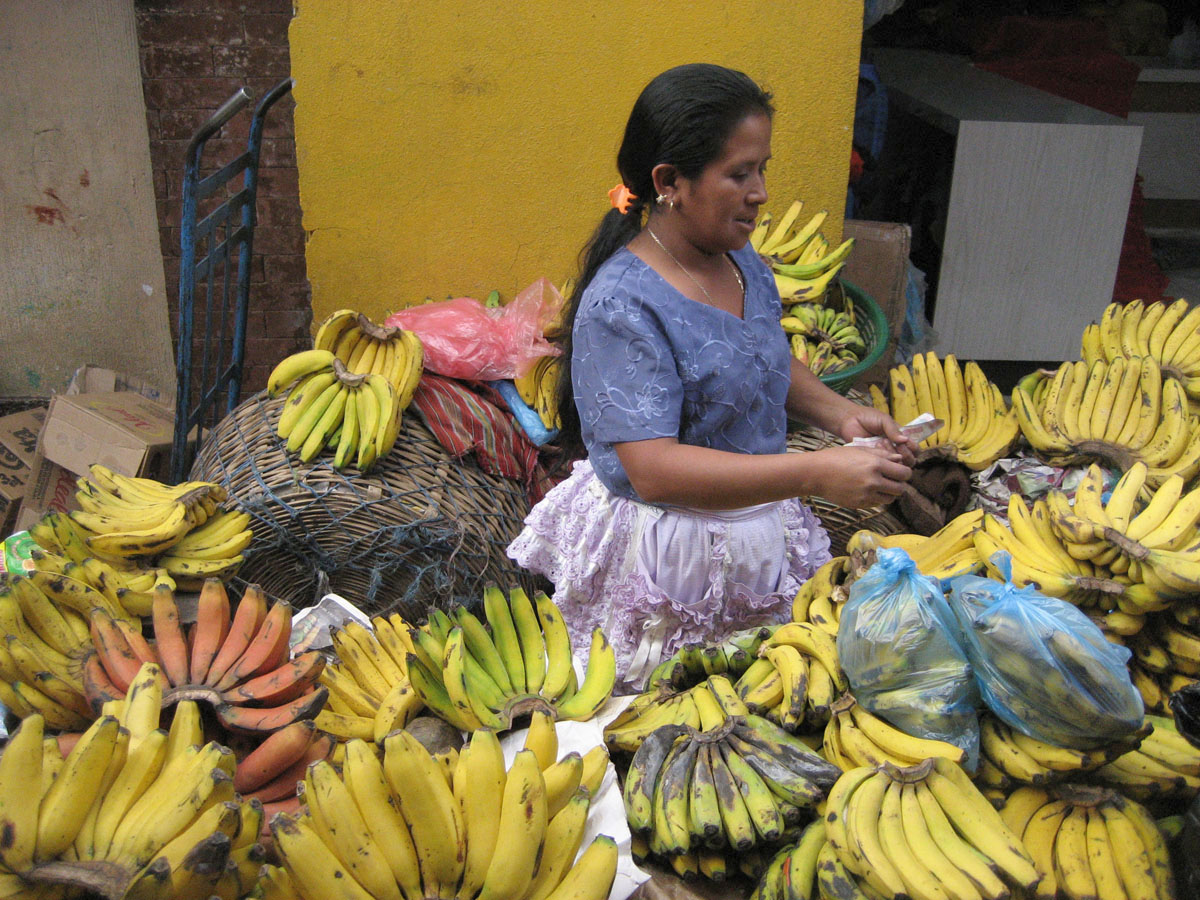 This lady was the only one in the market who had the tiny little bananas called "apple bananas" that are so sweet. I bought a giant bag full.