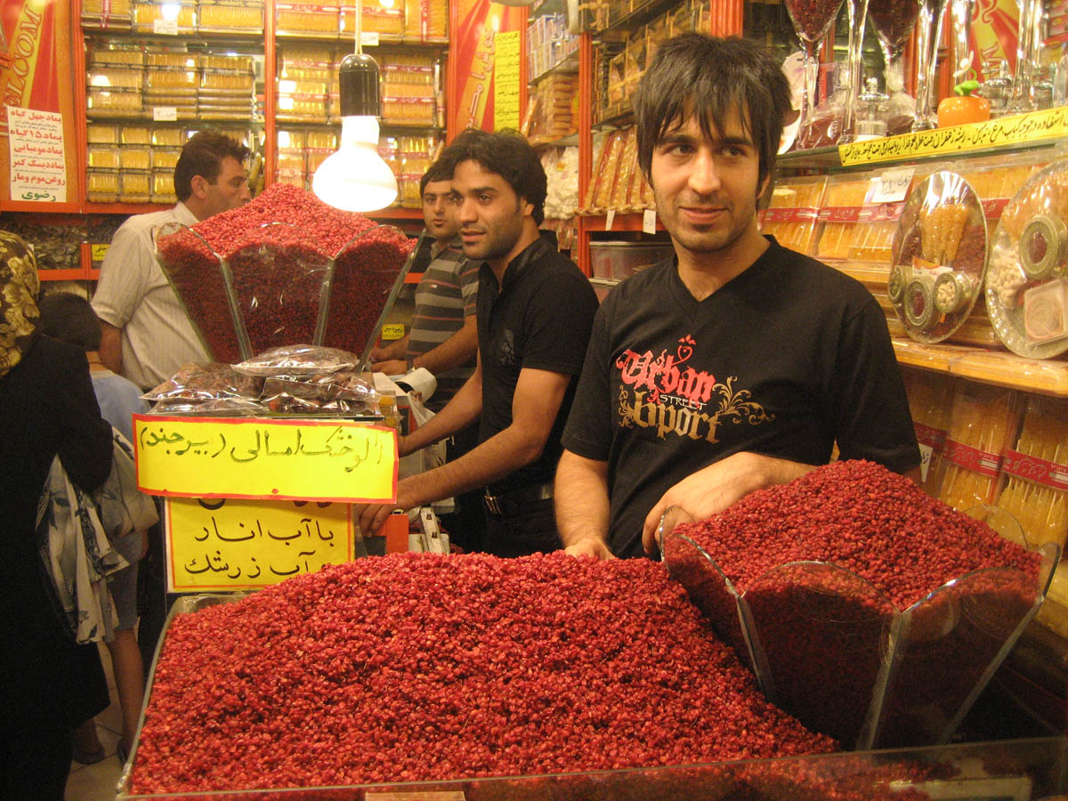 Berberis, or "barberries," which taste like a very tart cranberry. Often sprinkled over rice served with roast chicken.