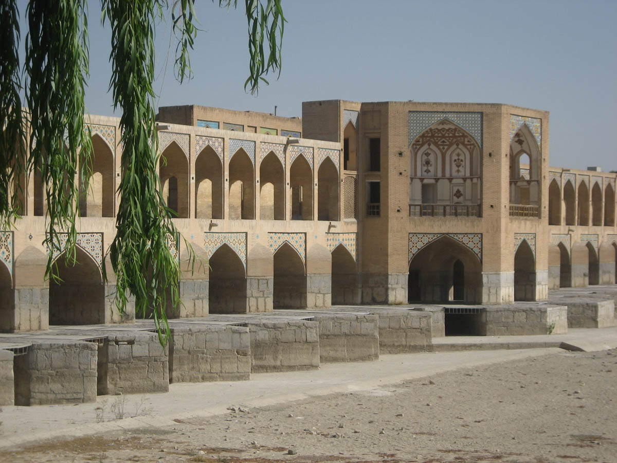 The Khaju Bridge, built in 1650, complete with viewing platforms in the pavilion built for the shah's pleasure. Zayandeh River, Esfahan.