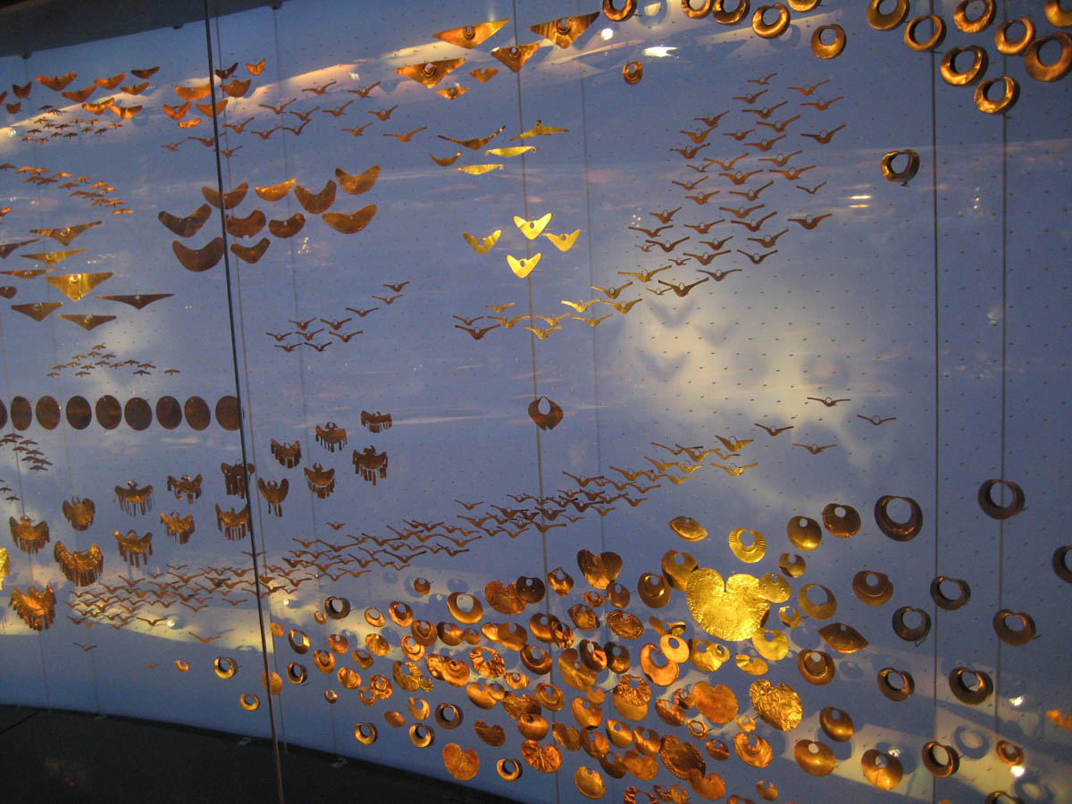An El Dorado ceremony is where the main chieftain would make offerings of gold in a lake, so the room lights up with blue lighting to simulate being in the lake with pieces of gold swirling around.