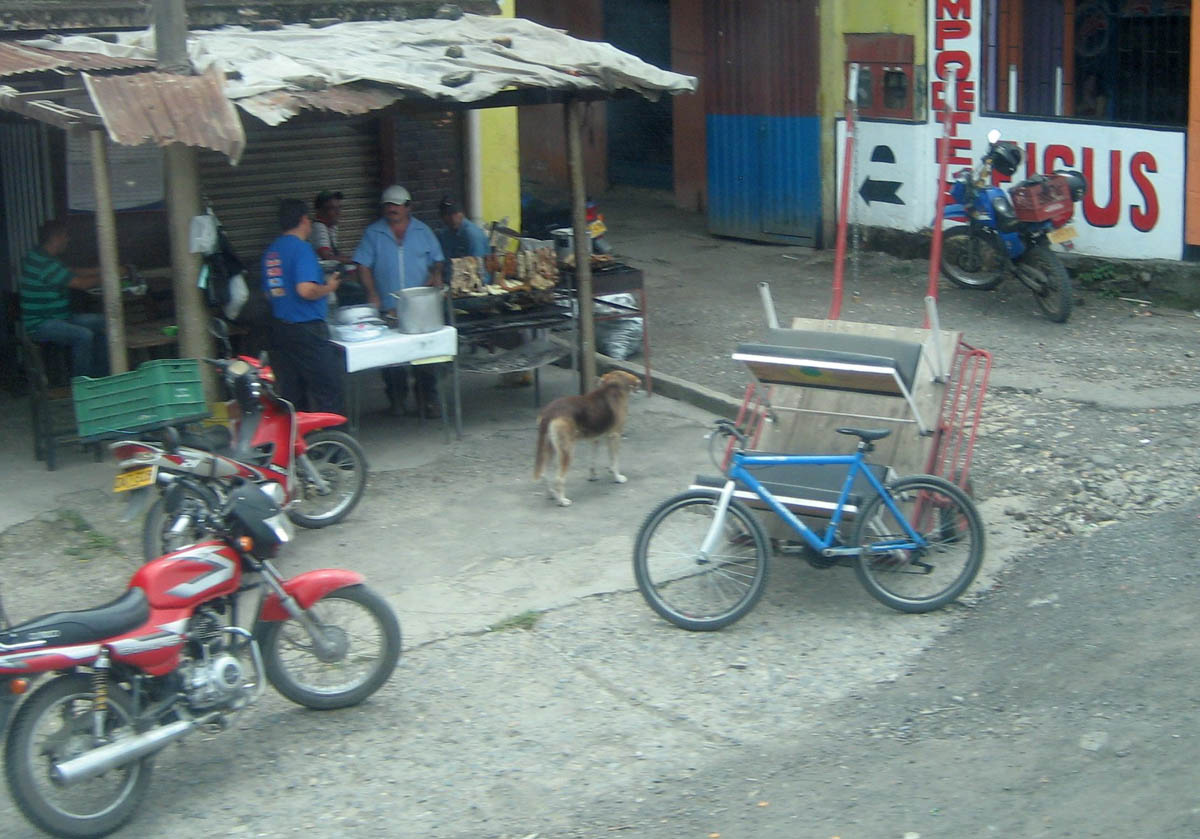A typical roadside barbecue stand seen as we passed through small villages on the way to Medellin.