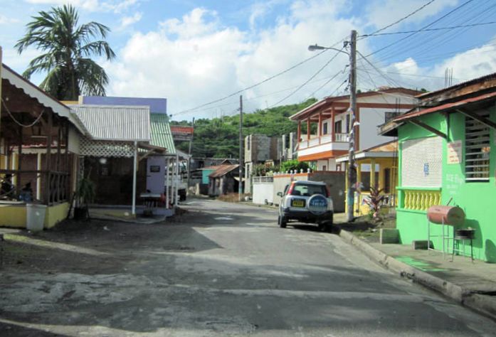 This is a typical village in Dominica where the main road passes. Almost every front porch has a "coal pot," or BBQ pit.