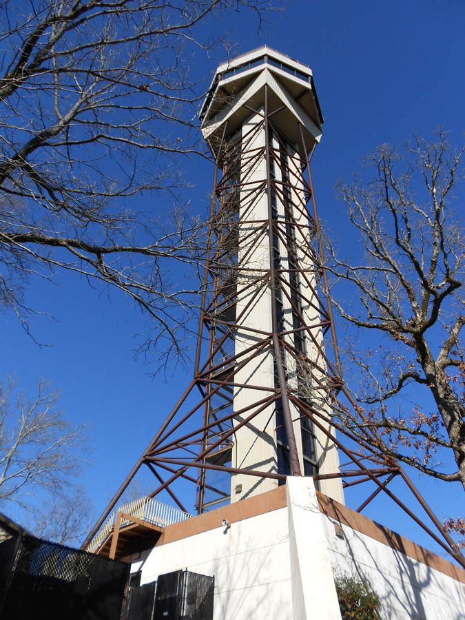 Hiking trails lead to the 216 ft Hot Springs Lookout Tower.