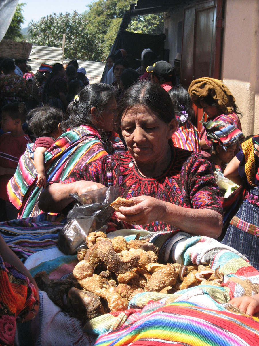 This woman is selling fried pork rinds at the entrance to the market at Chichicastenango (a name we loved to say until we learned it meant "Land of the Nettles," or poison ivy!)