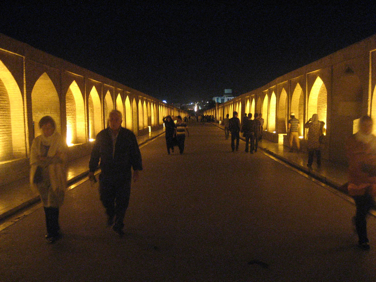 Esfahan is known for it's bridges, 11 in total, most illuminated at night. The Si-o-Seh, also called "The 33 Bridge" because of it's 33 arches, built between 1599 and 1602, led straight into our "Suite Hotel," and was a lively place for conversation.