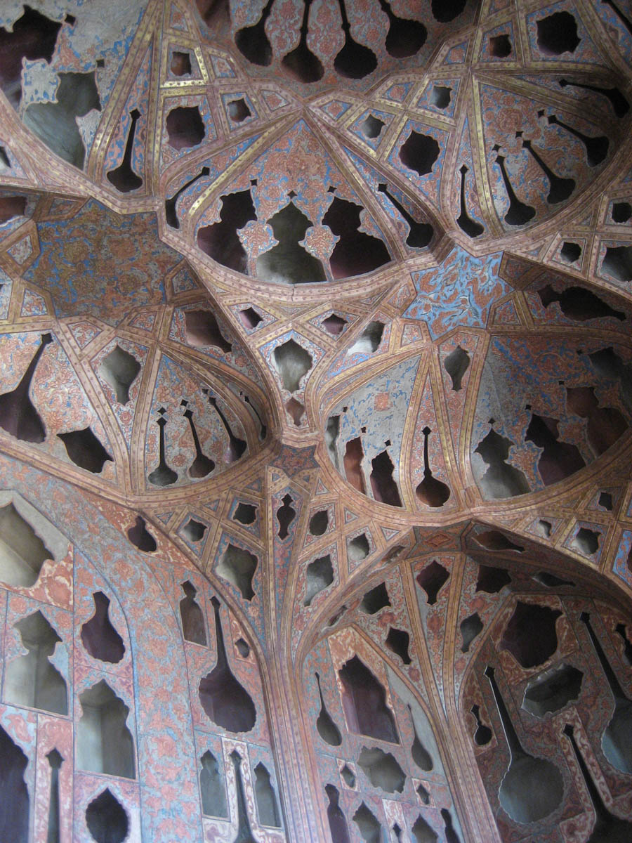Acoustic design of the music room inside the Ali Qapu Palace within Imam Square includes vase shaped cut-outs to maximize sound of live musicians.