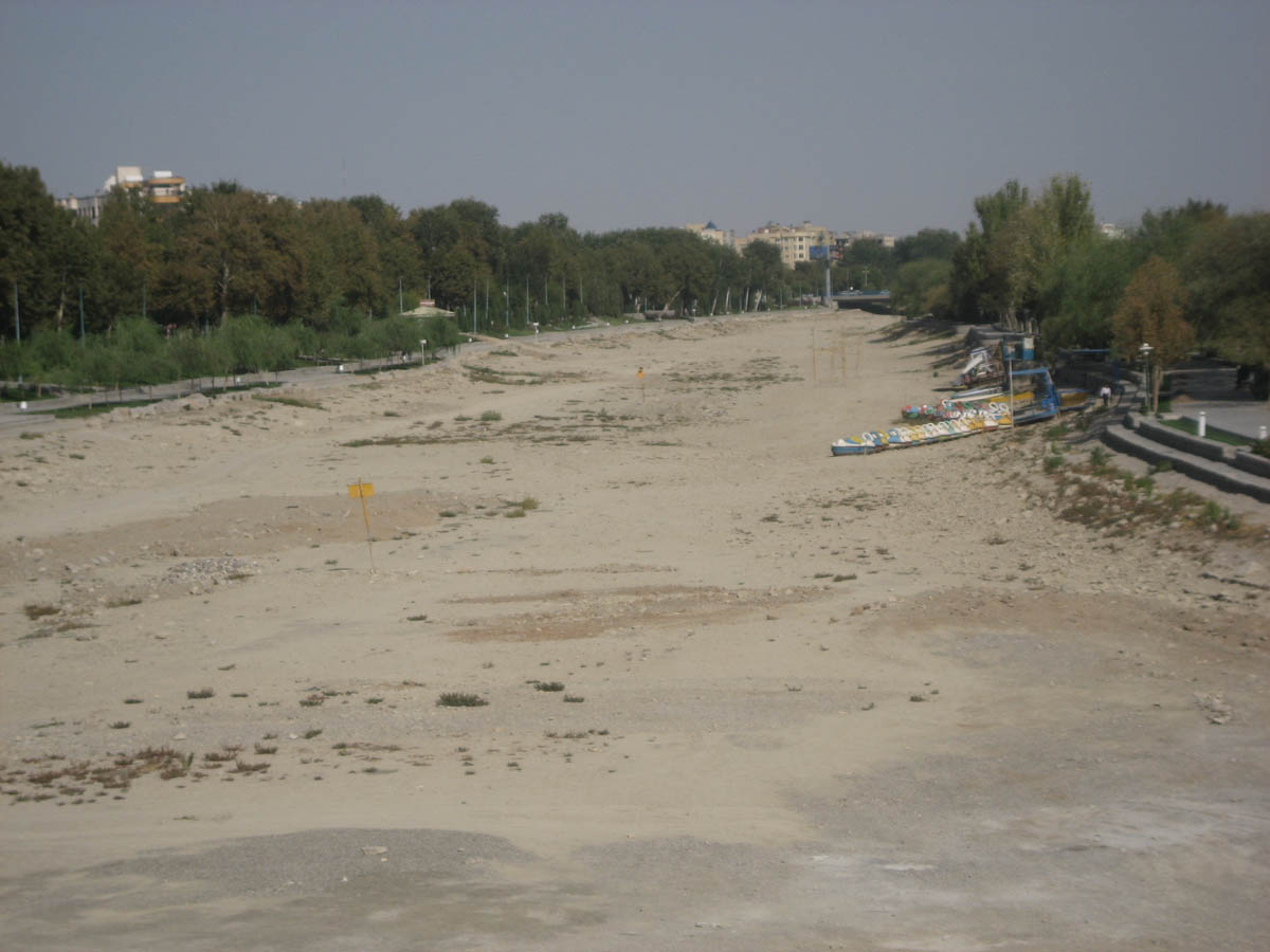 Sadly, the eleven "fairy tale" bridges of Esfahan lost some of their charm since the Zayandeh River has run dry. Note paddle boats stranded on the right.