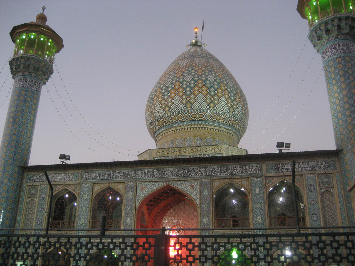 19th Century Nasir-ol-Molk Mosque lit up like Christmas at prayer time, Shiraz