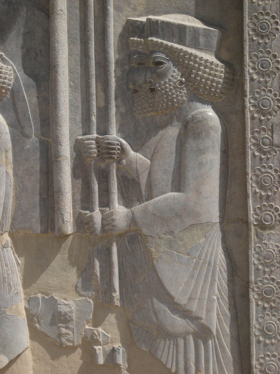 Typical Persepolis style bas-relief staggered the soldiers two by two so both faces could be seen.