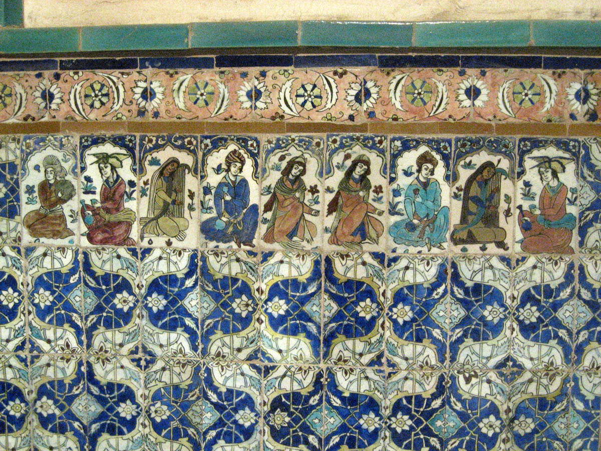 Beautiful tiles depicting scenes of Persian women in the Hamam-e Ganj Ali Khan bathhouse