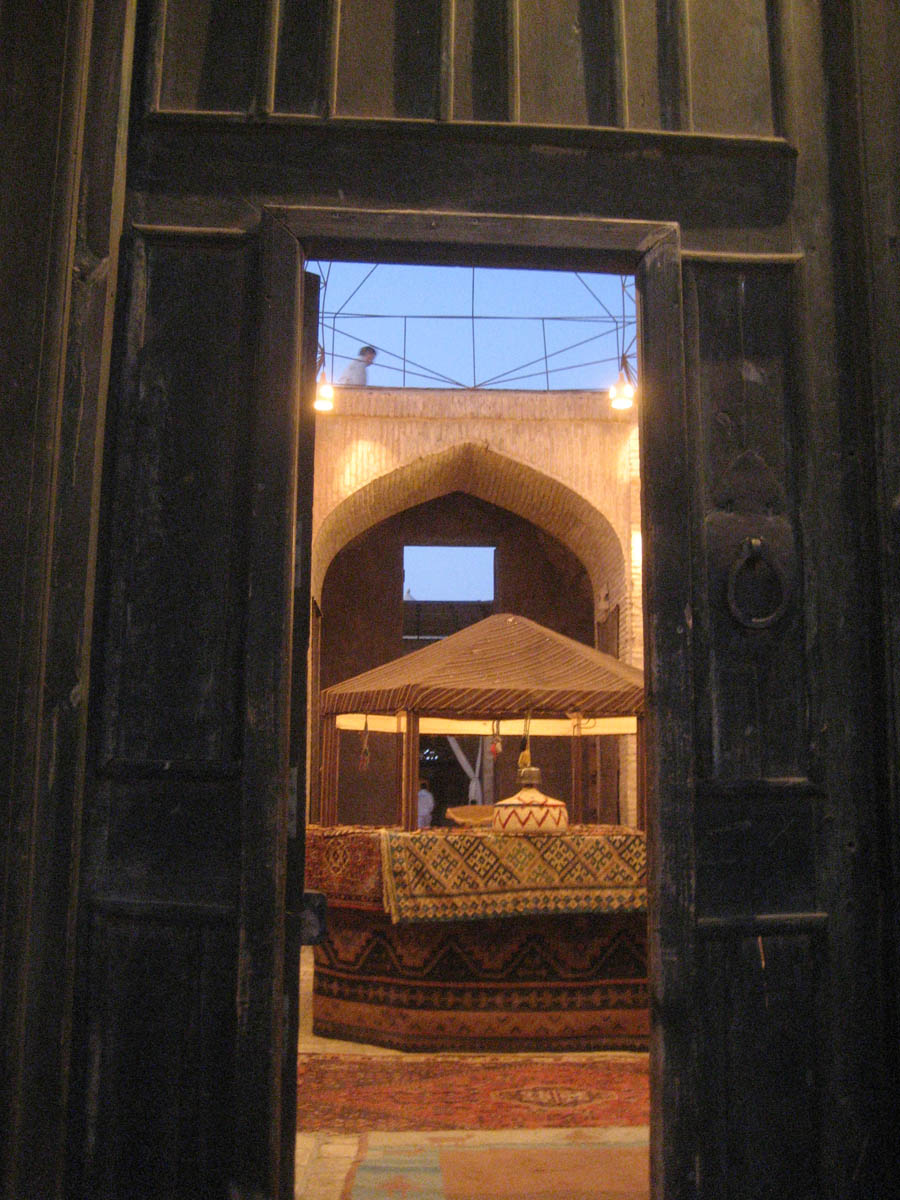 The caravanserai had a small door built inside a larger front door. This is a peek through the smaller door at the "front desk."