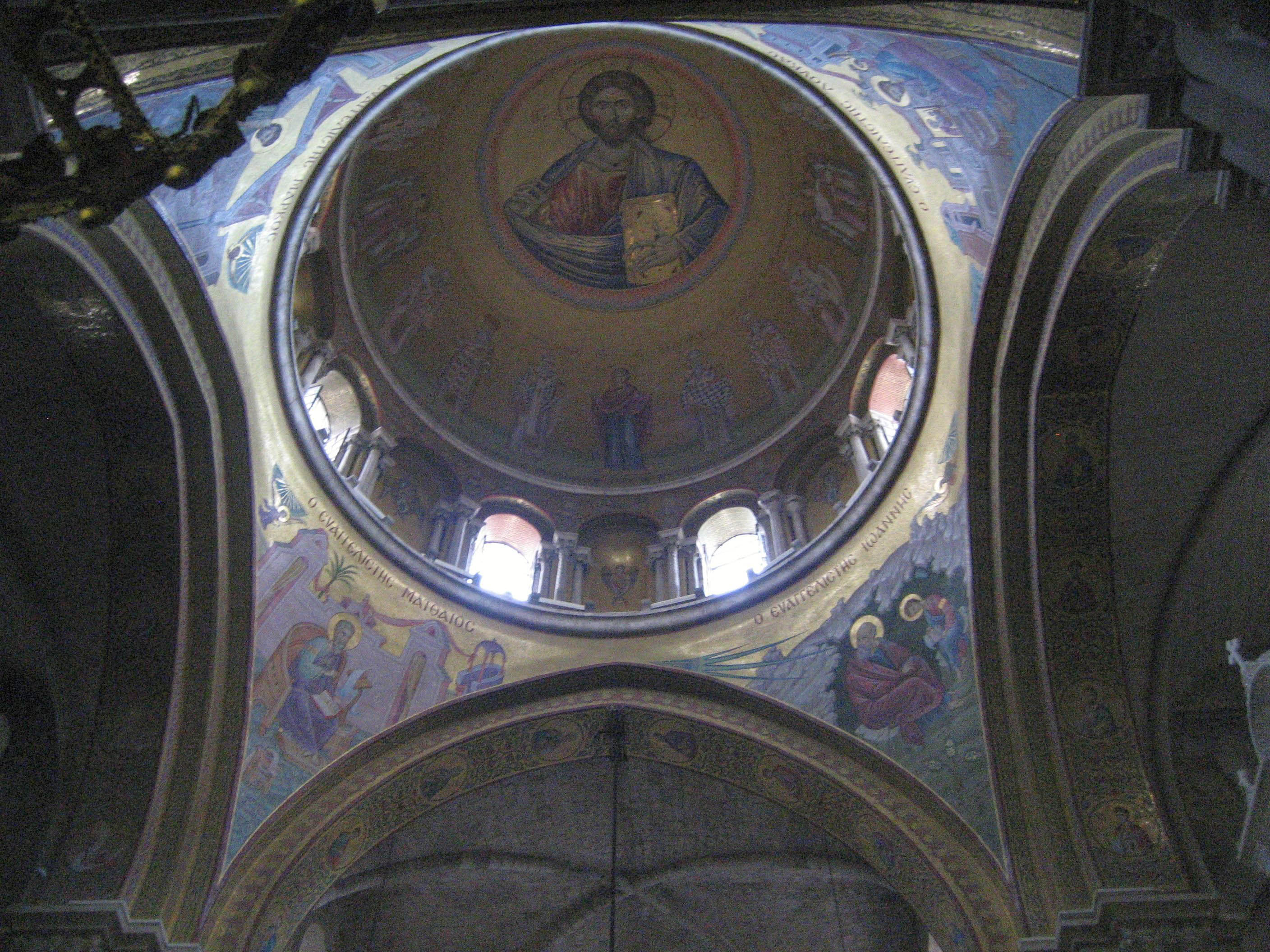 The mosaic dome, and what few windows there are in the Church of the Holy Sepulchre.