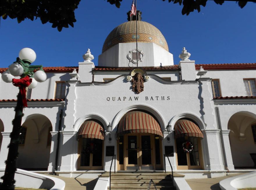 The Quapaw Bathhouse is representative of the Spanish Revival influence prevalent along Bathhouse Row.