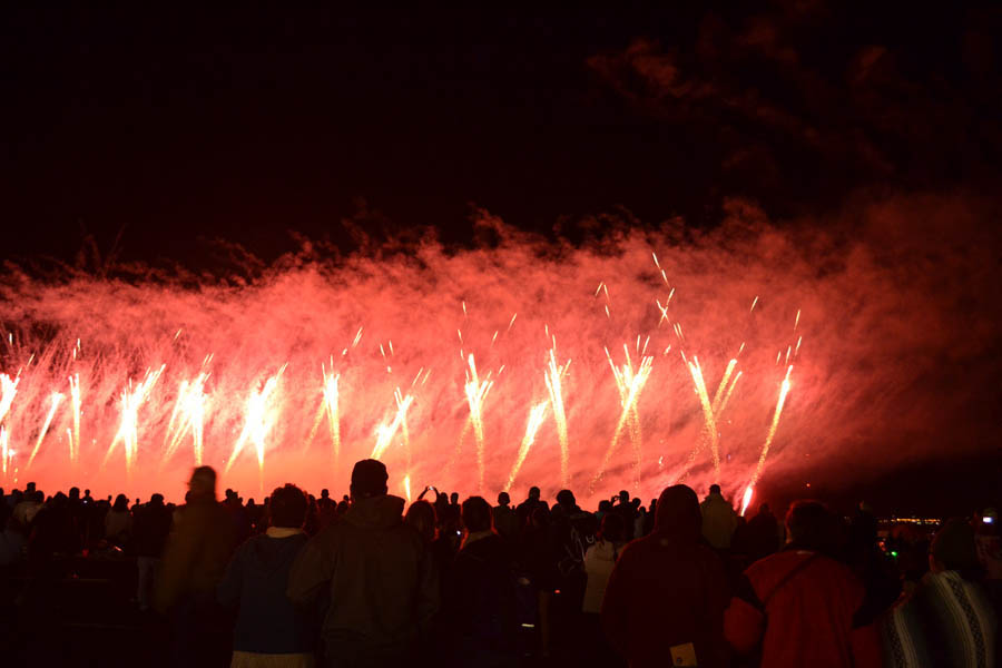 The fireworks are ignited from two different locations on the balloon field.