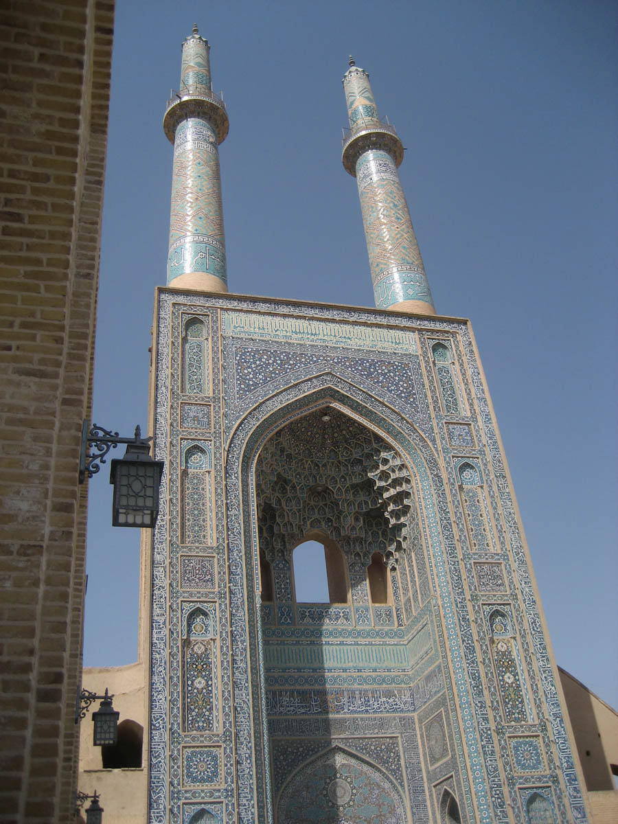 Jameh Mosque, Yazd. The minarets and entrance portal of this 15th century mosque are among the highest in Iran at over 150 feet tall.