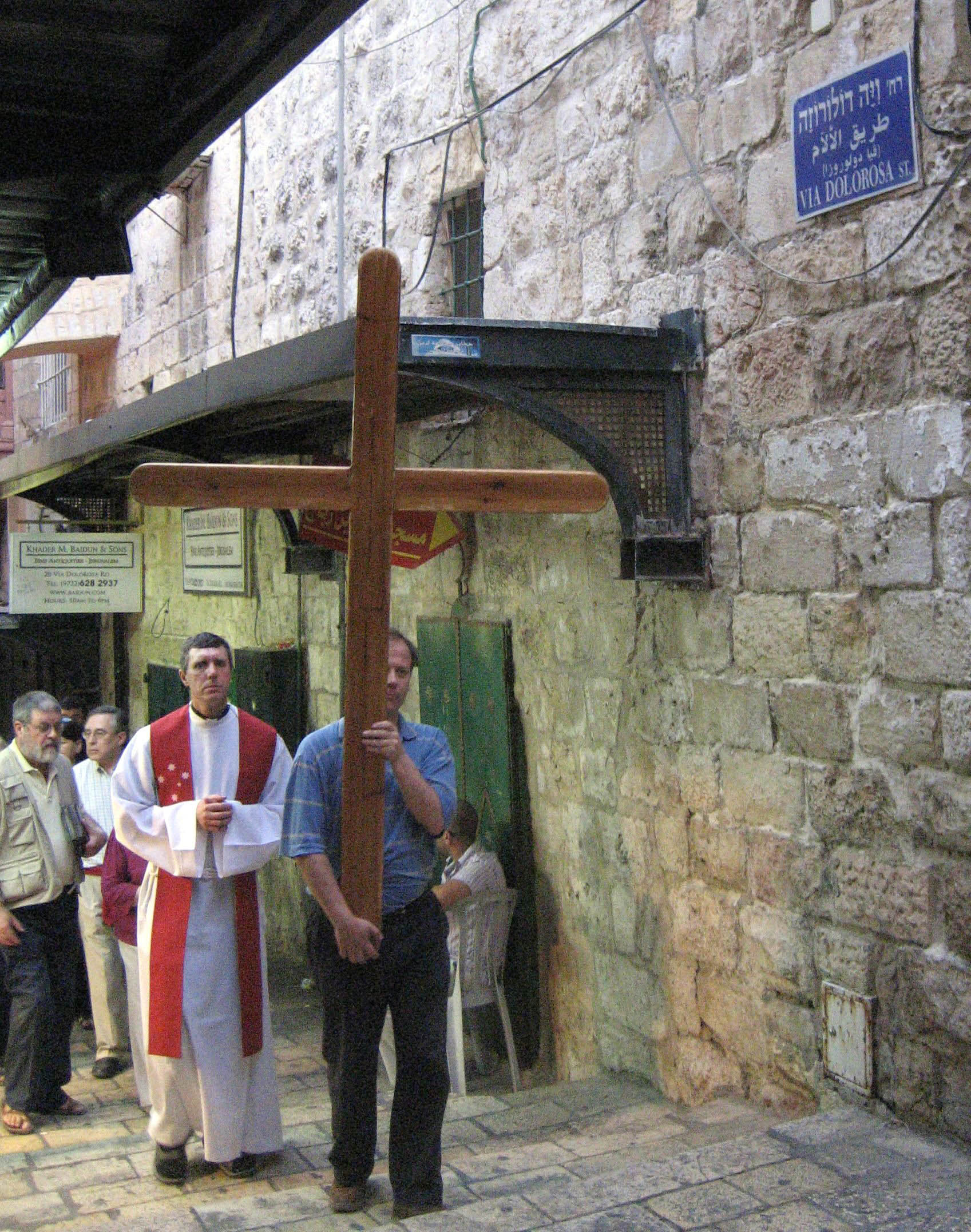 It is common to see Christian pilgrims walking the Via Dolorosa, carrying crosses and stopping along the way to pray, sing, or chant.