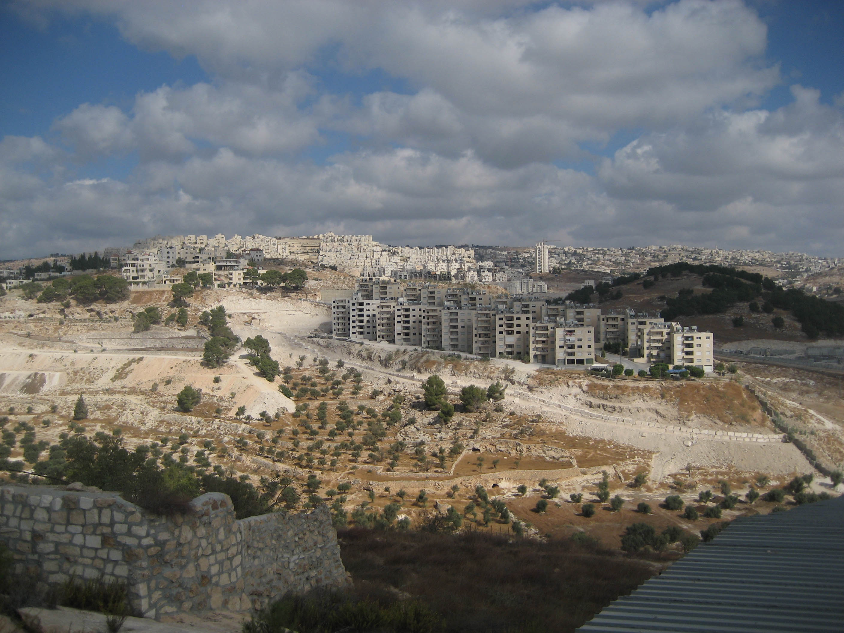 I took a tour to Bethlehem, located in the West Bank, or Palestinian Territories. First stop was "Shepherd's Field" where shepherds watch the flock of Jewish settlement building by night...