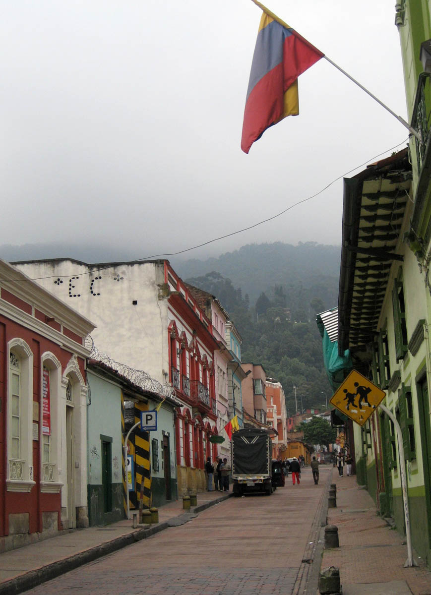 A typical colorful street of La Candeleria, the older Colonial section of Bogota.