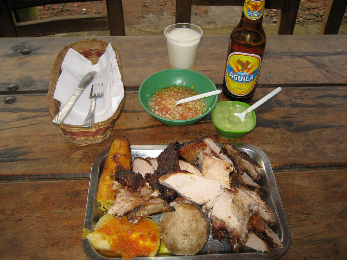 Not enough adjectives for how indescribably delicious this "mixed platter" was, containing beef, pork, ribs, plantains, yucca, and all the trimmings for about $8.00 US. (And yes, I DID have to ask for a doggie bag!)