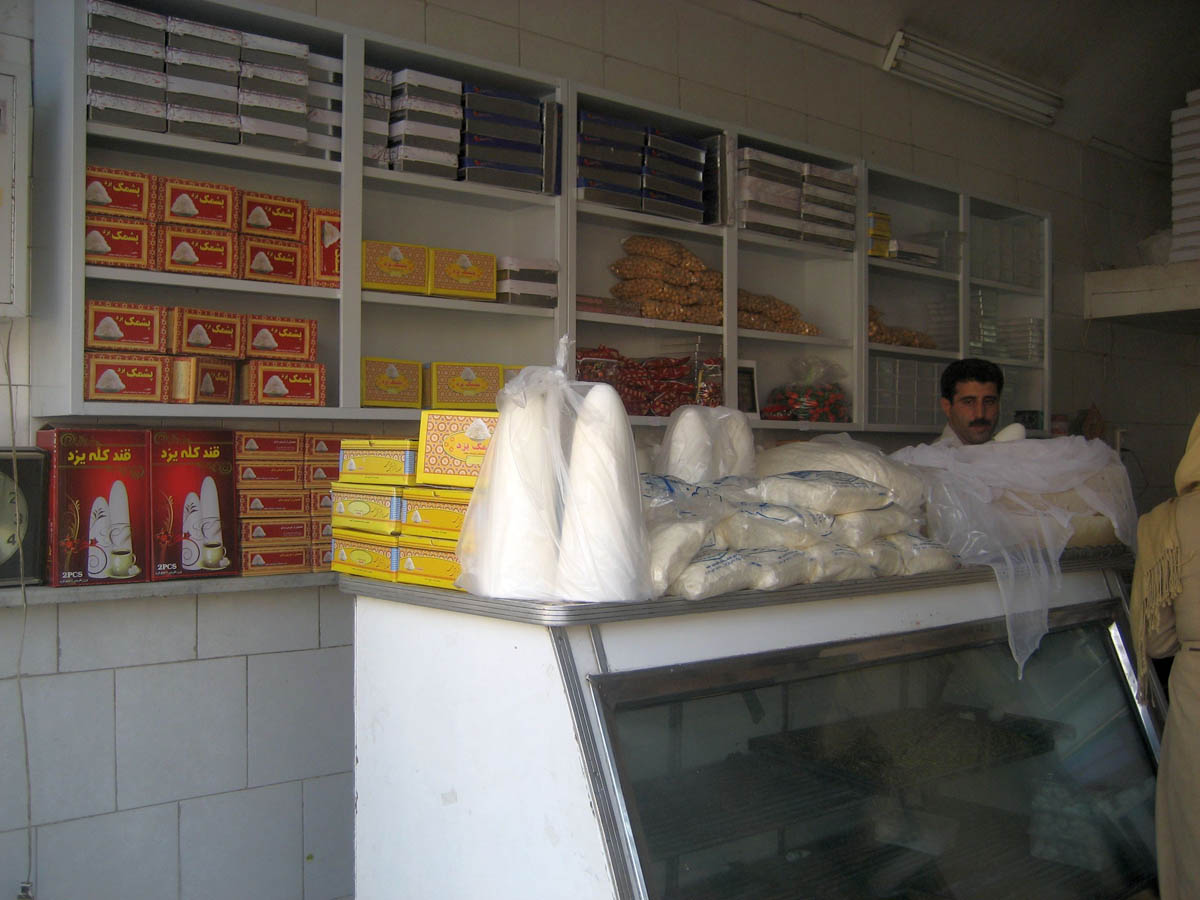 A candy store in the old town of Yazd selling "Pashmak" or spun sugar.