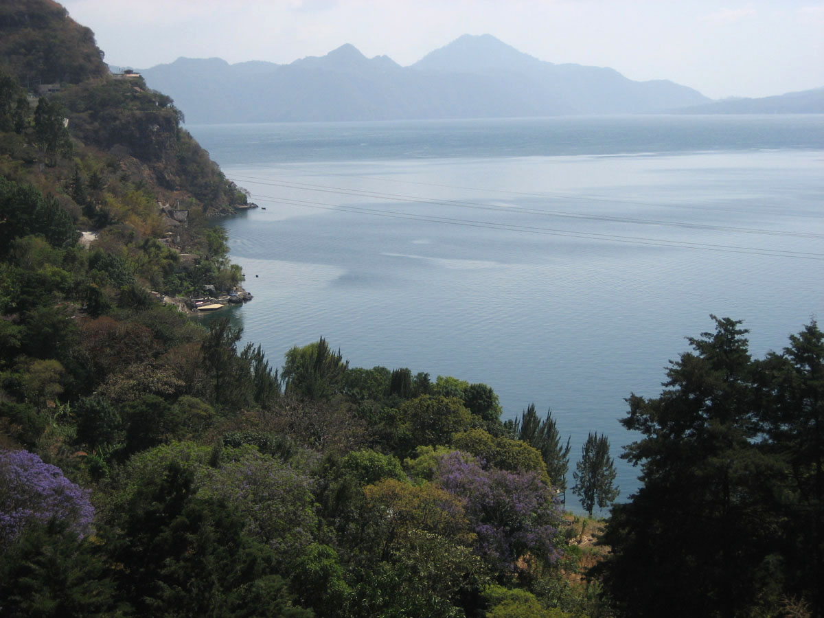 Purple Jacaranda trees line the road that goes a quarter way around the lake.