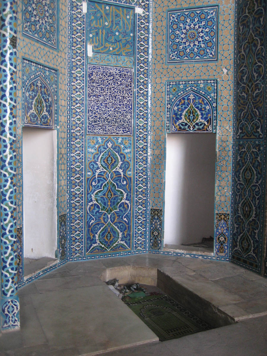 Lower half of niche has a sunken area where Imam sits to answer questions. Women line up in the right doorway and men line up in the left doorway.
