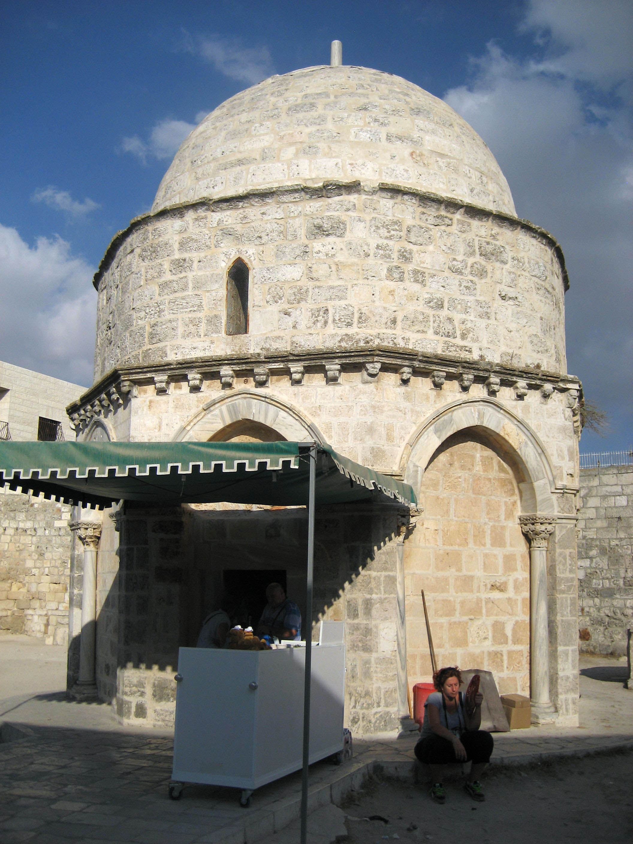 The Mosque of Ascension -- medieval chapel on Mount Olives where according to tradition, Jesus ascended to heaven 40 days after resurrection. Why, there is even a footprint in the stone to prove it. ;-)