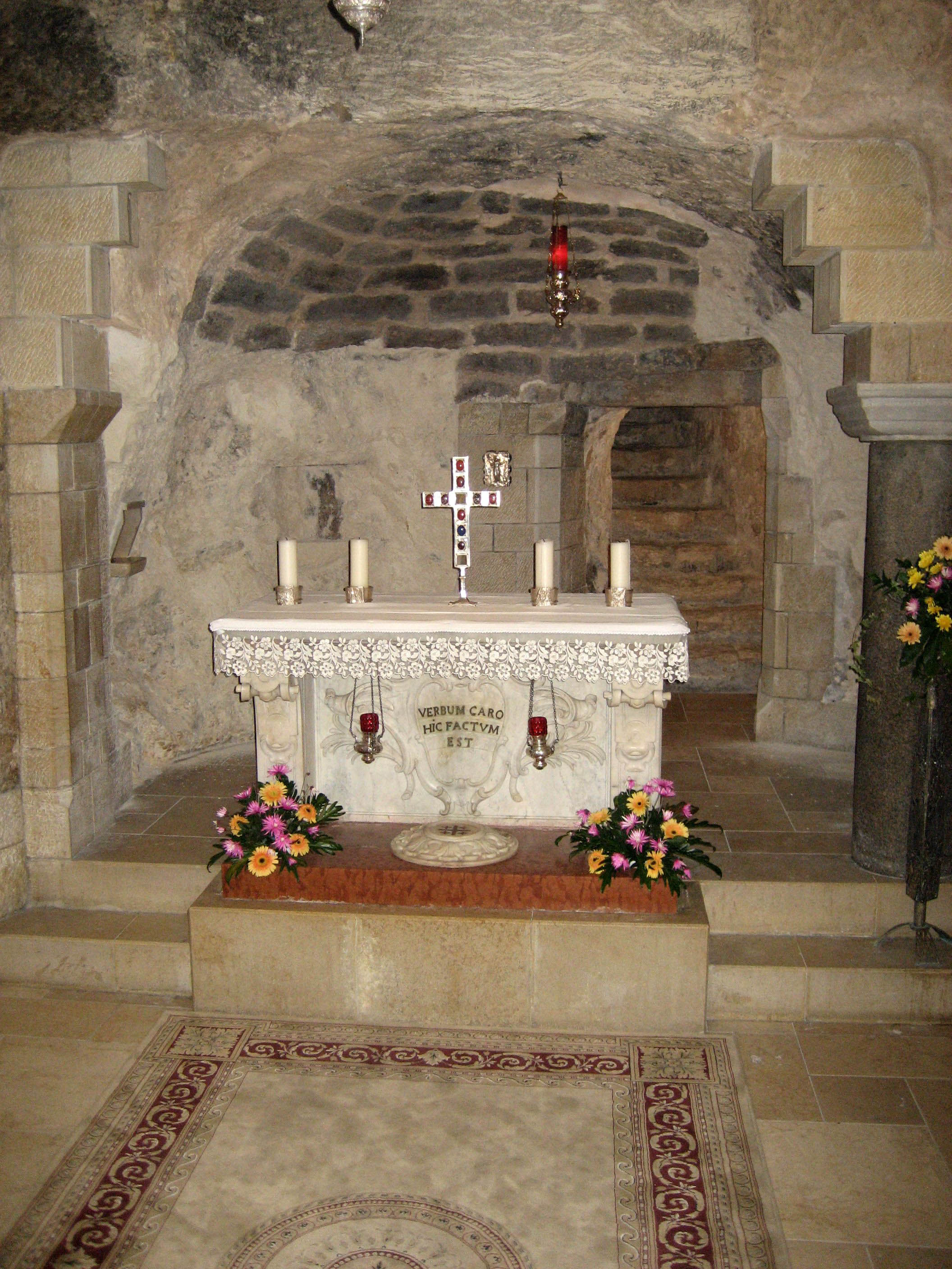 Inside the Basilica is the "lower church," the Grotto of Annunciation," part of a 5th century Byzantine church, with mosaic floors still in place.
