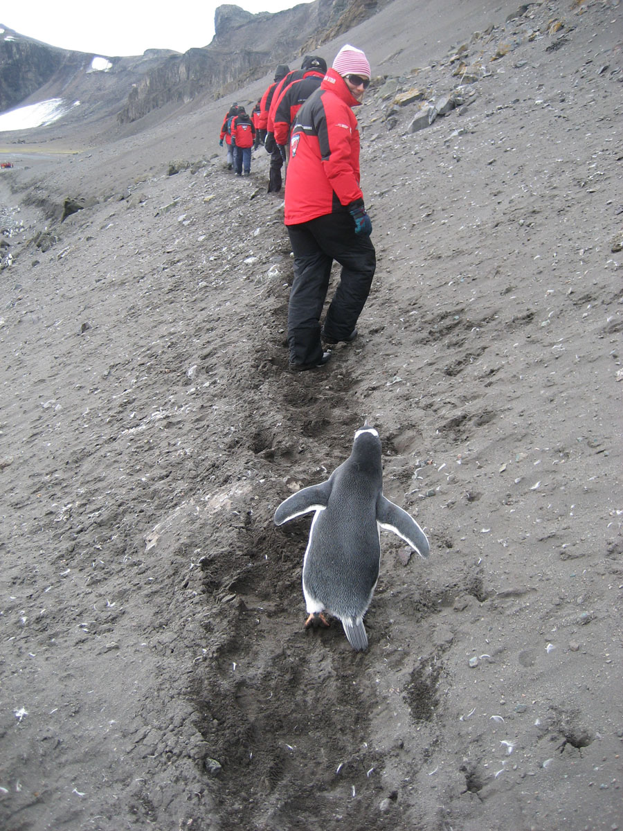 ....when one of the penguins decides to join us on the hike.