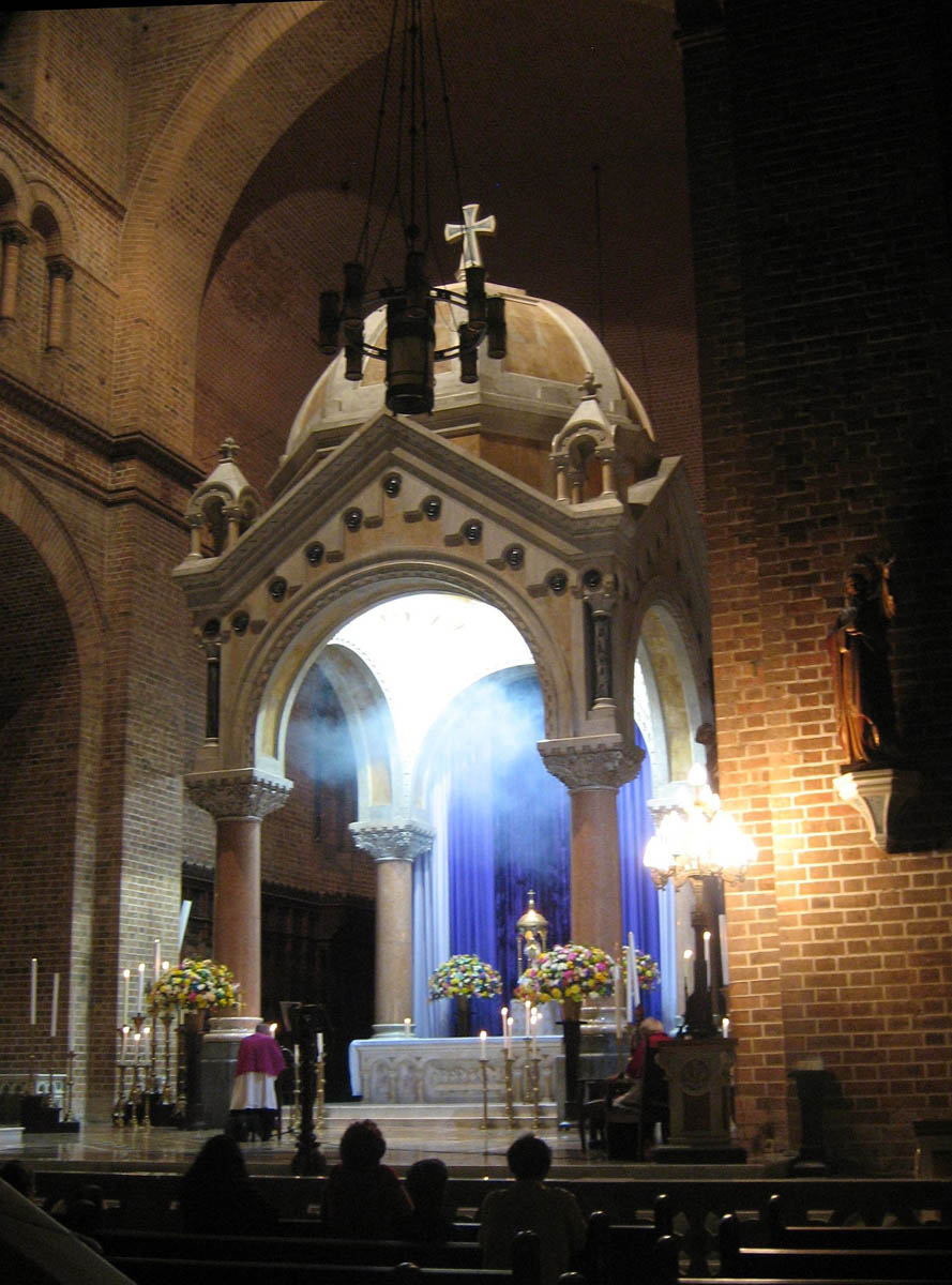 There was a mass taking place, but I could not resist sneaking a stealth photo, as it was so beautiful. It was Ash Wednesday, which I suspect was the reason for all the flowers. (Note the incense cloud!)