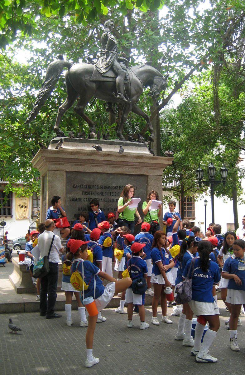 These poor instructors are trying to read a history lesson to the students of the Cartagena International School, who could not be less interested. Since they were reading in English, I was a whole lot more interested than the students!