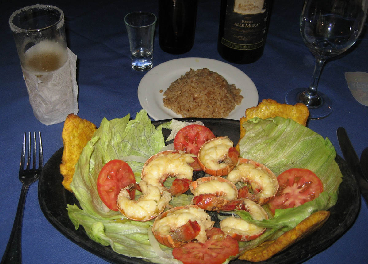 Langostino Lobster Tail in Garlic Butter, which I expected to be one small tail, but I got several. Scrumptious! In Colombia, they serve "Cerveza Michelada," beer served in a salt-rimmed glass with a shot of fresh squeezed lime juice.