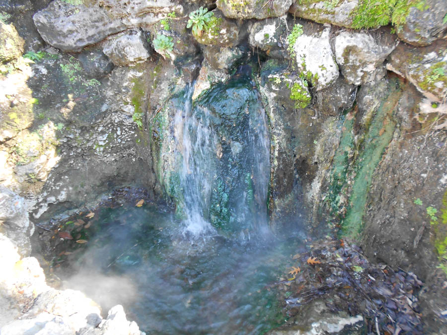Evaporating and cooling of the water over millions of years causes calcium and silica salts to build up and create rock called "Tufa."