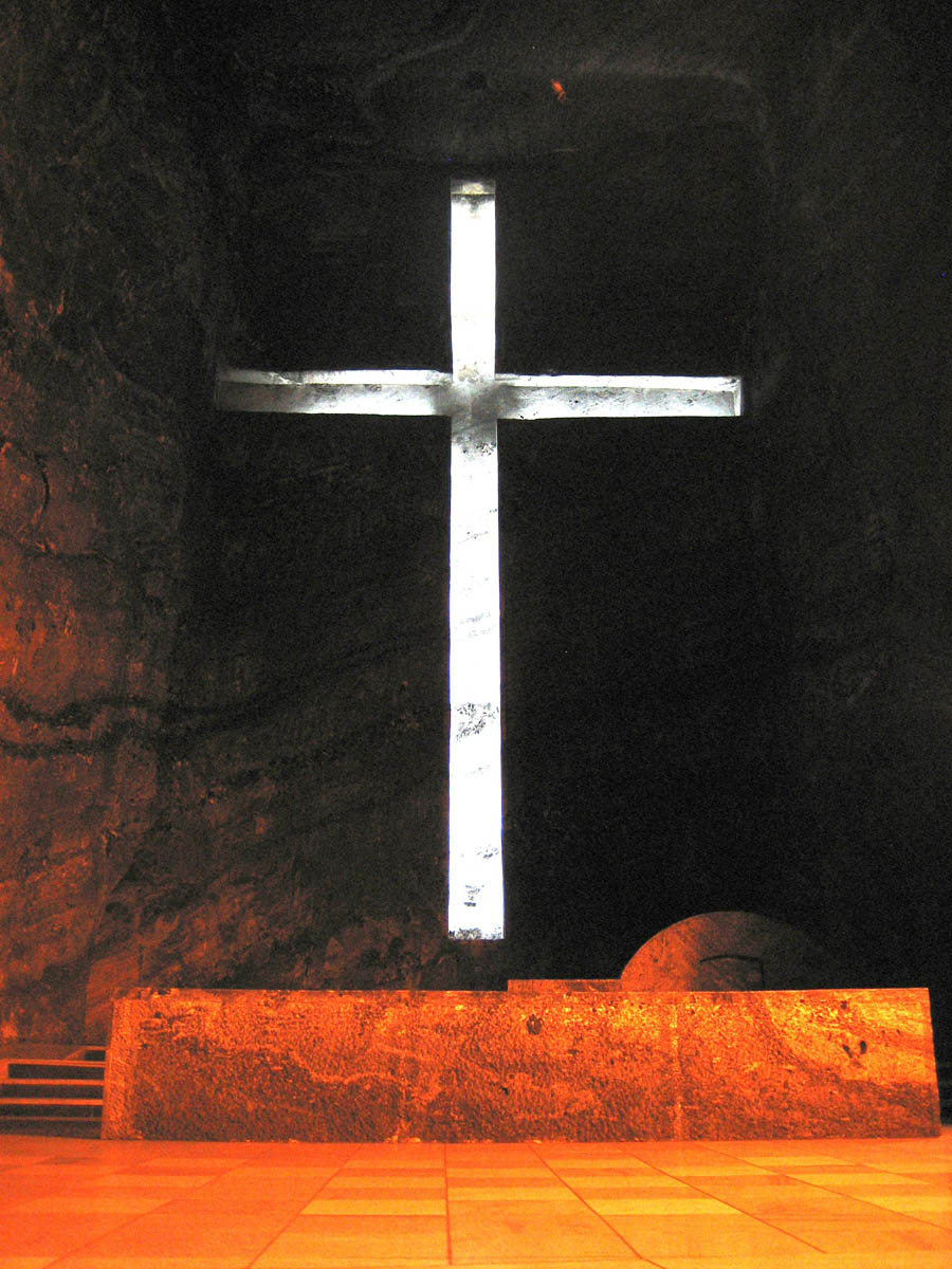Once you reach the actual cross at the end of the cathedral, (85ft high X 35ft wide) you realize it is actually the shape of a cross carved into the stone and illuminated with white light.