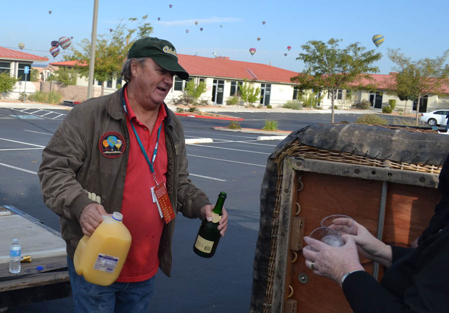 It is the balloonists tradition to end each flight with a bottle of bubbly.