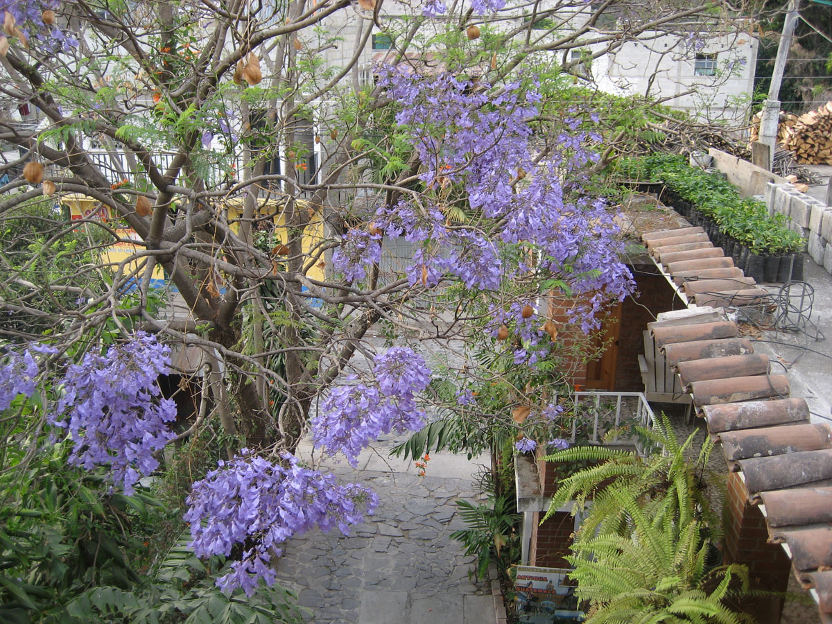 Beautiful Jacaranda tree in bloom in the courtyard.