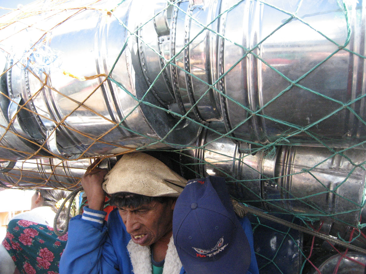 This guy is carrying this load of aluminum tubs on his head. It was about 8 feet long.
