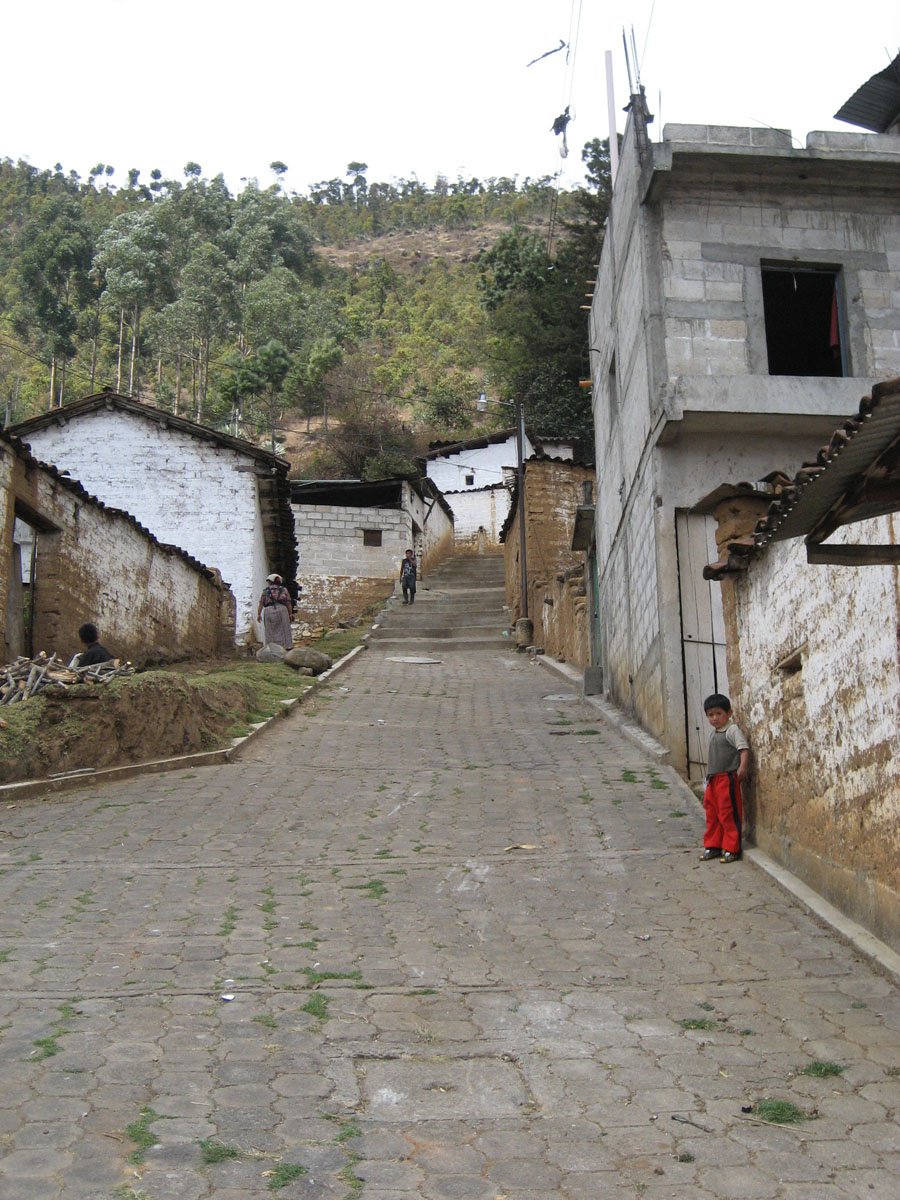 A street in San Andreas showing the more traditional adobe buildings alongside the newer, more modern houses built from concrete cinder blocks after the 1976 earthquake.