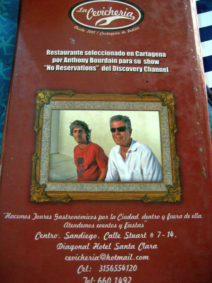 They are capitalizing on celebrity chef Bourdain's visit with his picture on the back of their menus. I pointed to the photo and said "Oh, Senor Bourdain es mi novio!" They all laughed hysterically. Why were they laughing, do you think?