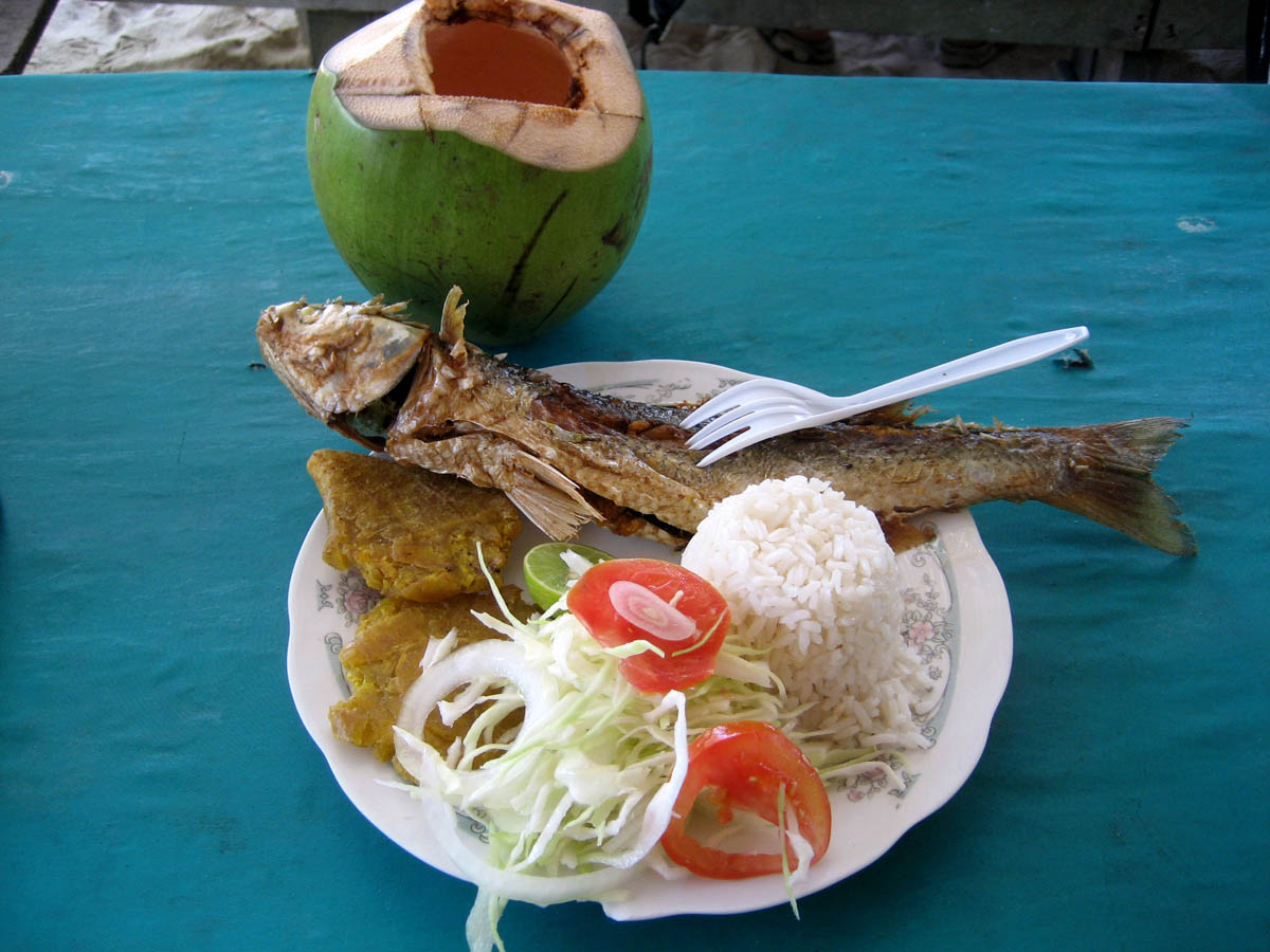 Lunch was included on the tour - a very anorexic but tasty fried fish, rice in coconut milk, fried plantains, and a slaw salad.