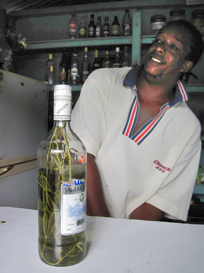 Another interesting stop on Prim's island tour is the roadside stand selling "bush rum," where drivers pull off the road for a shot of rum. Not very comforting on these scary roads!