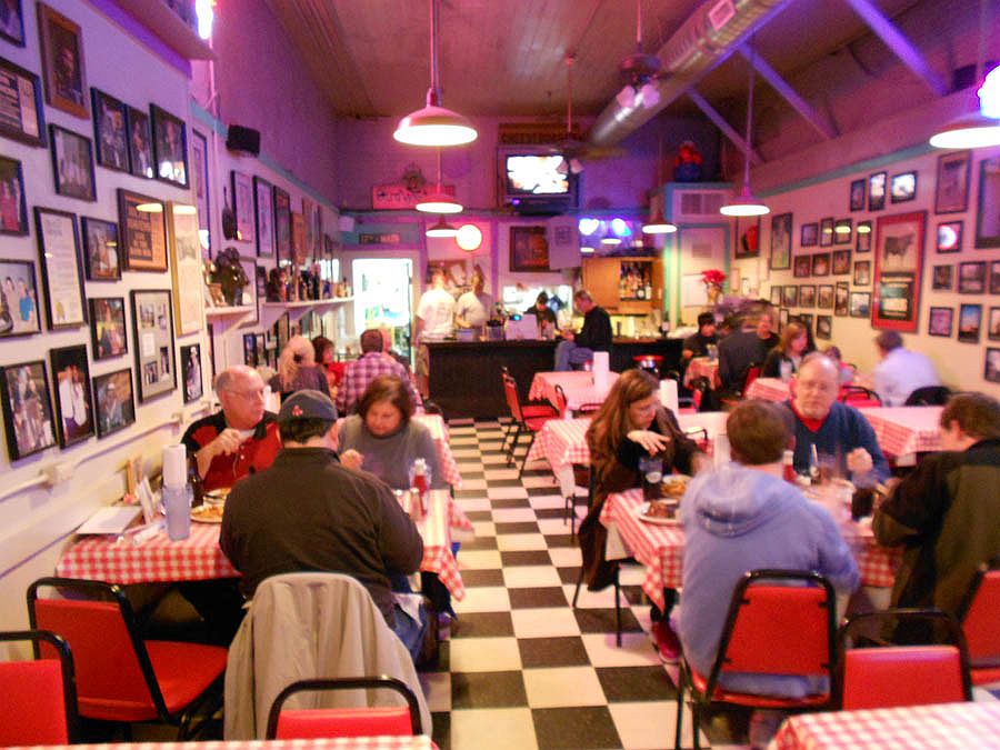 Walls covered in Clinton memorabilia and checkered tablecloths give this place a kitschy atmosphere.