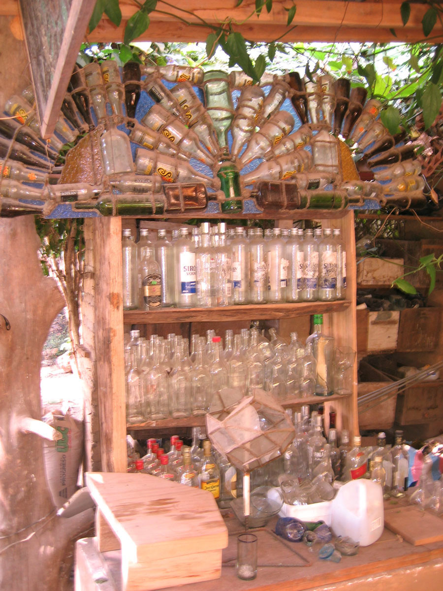 This eco-hotel is made mostly from recycled projects, and this is where the glassware is recycled.
